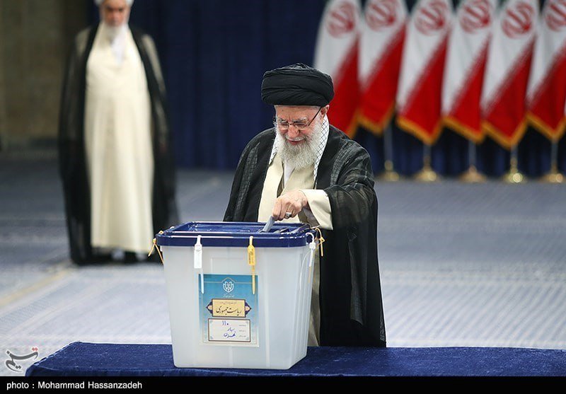 آیتالله خامنه، رهبر جمهوری اسلامی ایران امروز (جمعه، هشت سرطان) برای اشتراک در انتخابات ریاست جمهوری کشورش به پای صندوقهای رایدهی رفت.