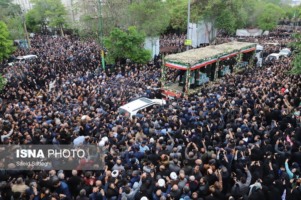 پیکرهای ابراهیم رییسی و همراهانش صبح امروز برای تشیع جنازه از مکان موسوم به «معراج شهدا» در تبریز ایران برداشته شد.